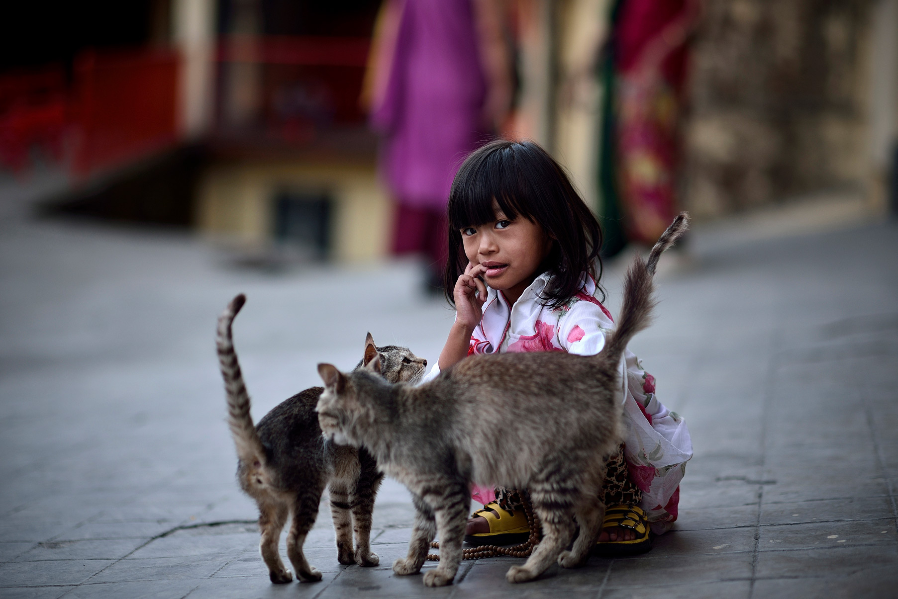 girl-child-with-cats-darjeeling-India-street