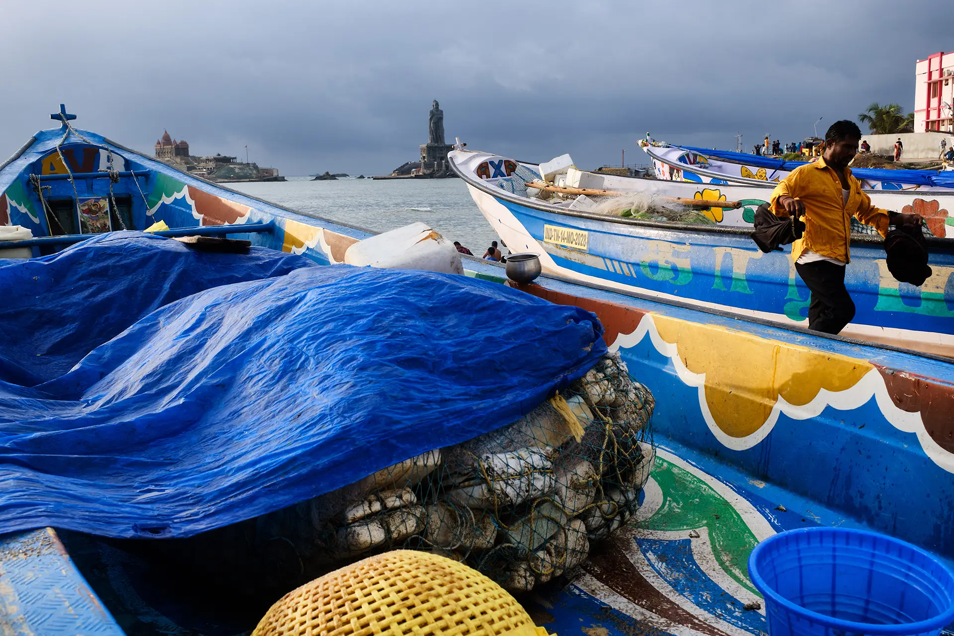 man-amidst-boats-Kanyakumari_India